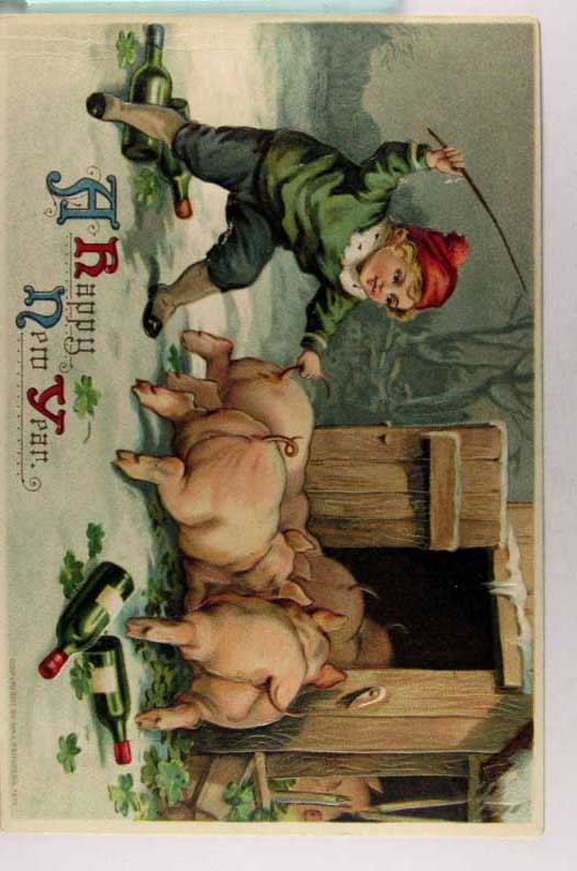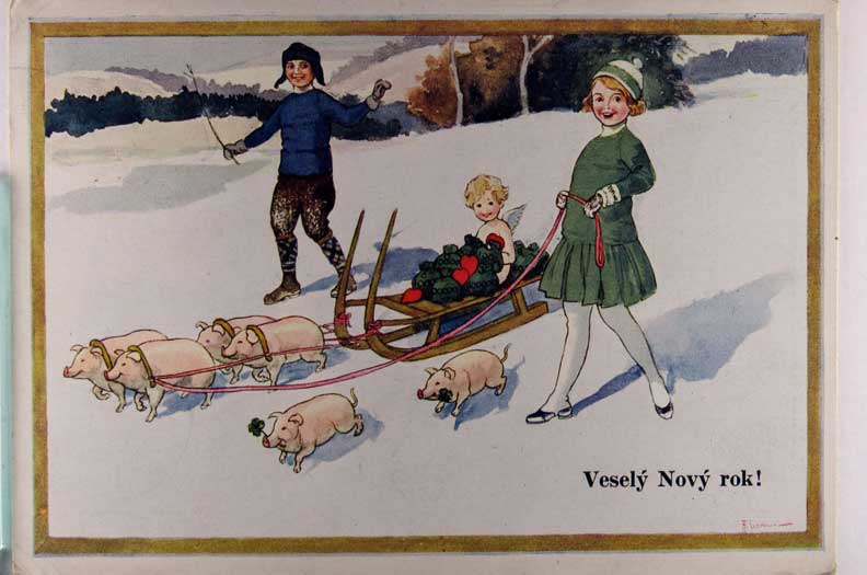 Lot #746. View Larger | Rotate New Year w/ Pig, Czech Pub., Used DB m cor cr F-VF