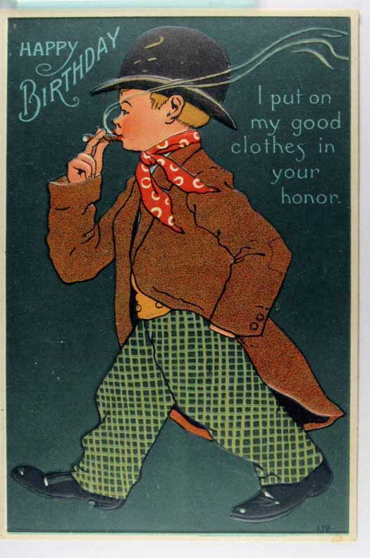 Lot #704. View Larger | Rotate Birthday w/ Smoking Child, German Pub., Used DB emb Near VF