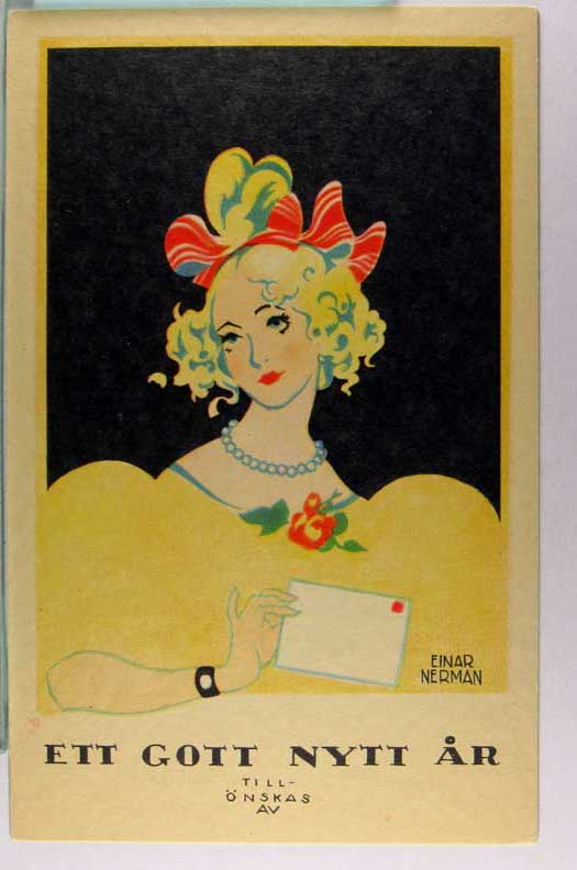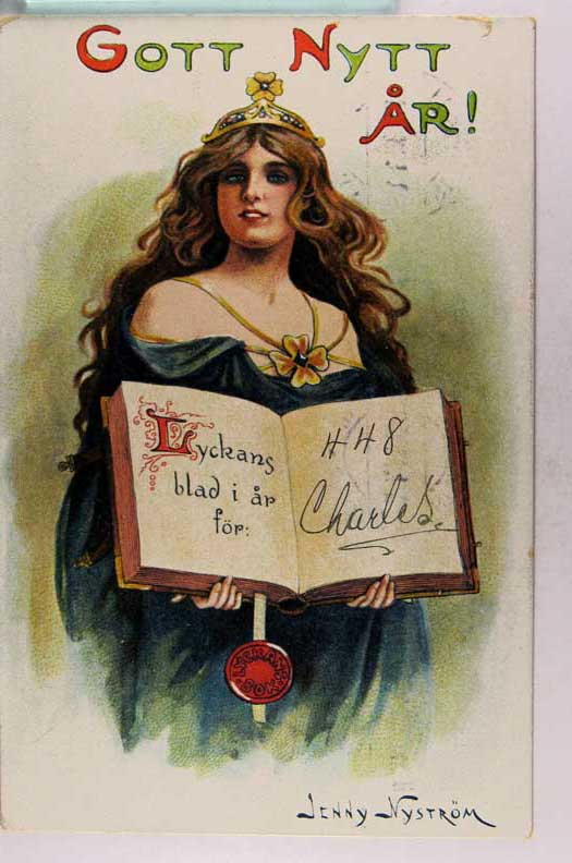 Lot #756. View Larger | Rotate New Year, Art. Sig. Jenny Nystrom, Swedish Pub., Used 1915 DB m edge tear & cof F