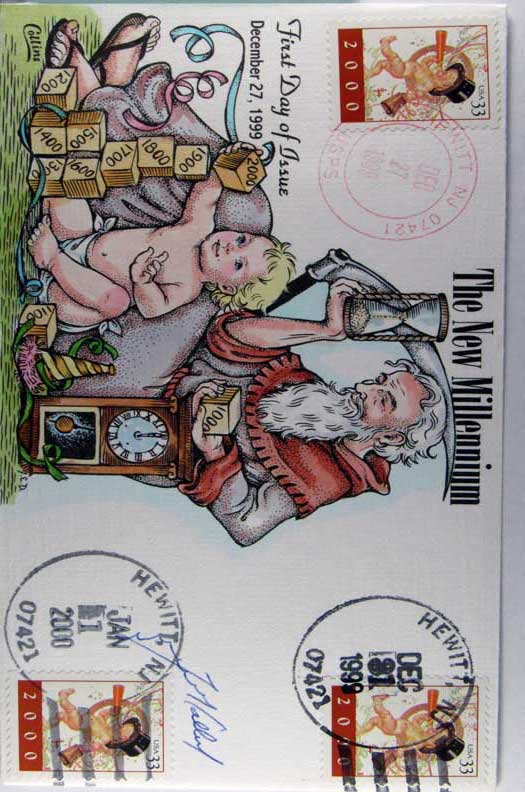Lot #762. View Larger | Rotate Hand-Painted First Day Cover by Collins, New Year, “The New Millennium”, 2000 VF