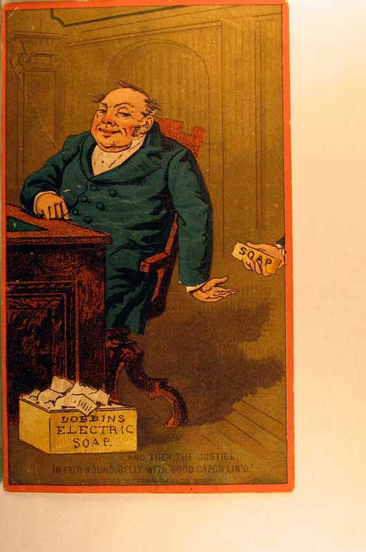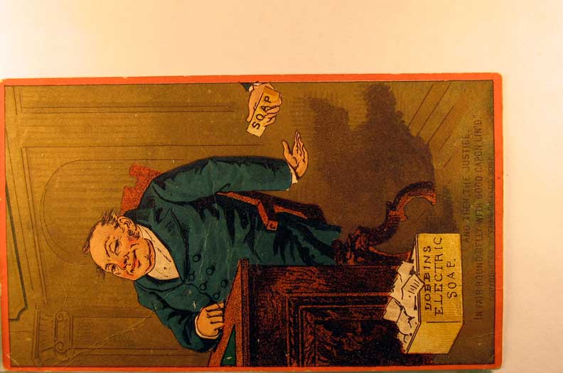 Lot #1638. View Larger | Rotate Trade Card, Adv. Soapine “The Great Dirt Killer”, w/ Gold Ink VF