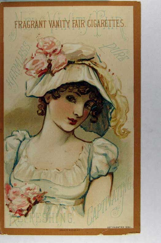Lot #1631. View Larger | Rotate Trade Card Adv. Vanity Fair Cigarettes, “Harmless” m cor wear VF