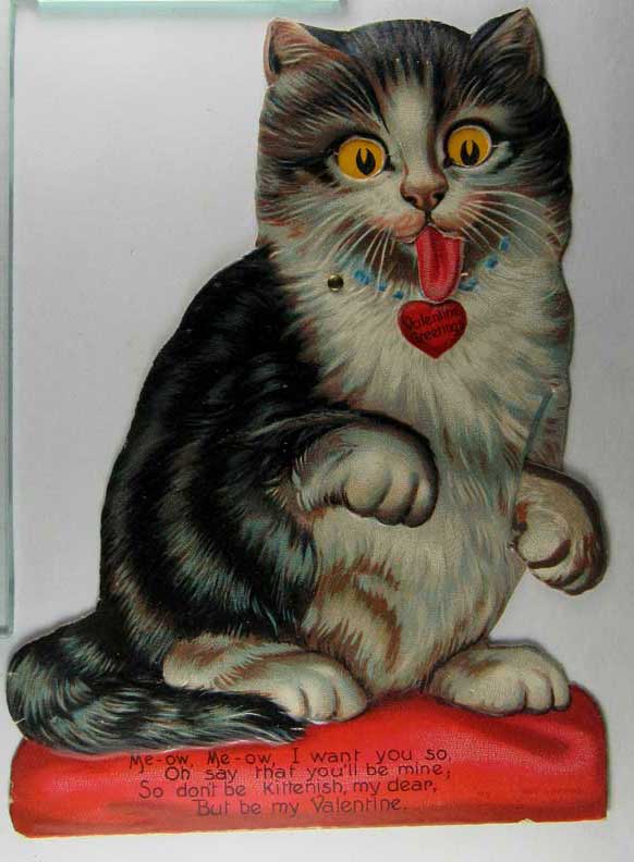 Lot #1649. View Larger | Rotate Die-Cut Mechanical Valentine w/ Cat emb m edge wear Near VF