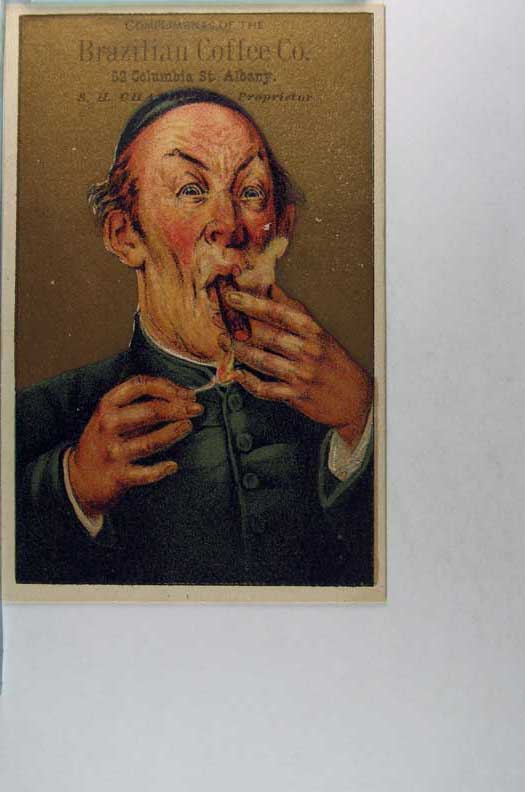 Lot #1637. View Larger | Rotate Trade Card, Man w/ Cigar, Adv. Brazilian Coffee Co., Early VF