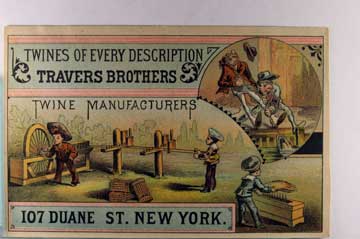Lot #1624. View Larger | Rotate Trade Card Adv. Travers Brothers Twine, New York VF