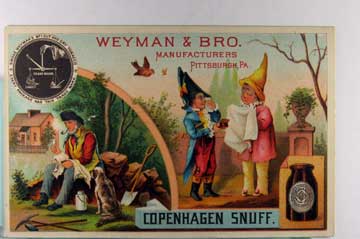 Lot #1623. View Larger | Rotate Trade Card Adv. Weyman & Bro. Copenhagen Snuff Tobacco VF