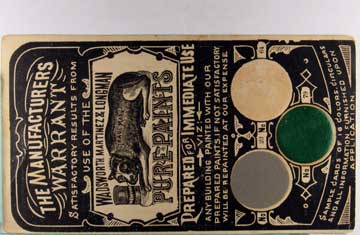 Lot #1605. View Larger | Rotate Trade Card Adv. Wadsworth Pure Paints, w/ Novelty Paint Samples missing one color VF