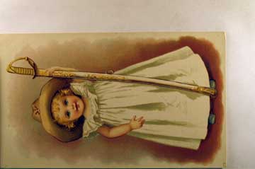 Lot #1617. View Larger | Rotate Trade Card Adv. Tetley’s Tea, India & Ceylon, Little Girl w/ Sword, Attractive VF