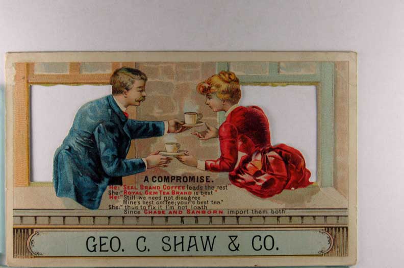 Lot #1606. View Larger | Rotate Die-Cut Double Sided Trade Card Adv. Chase & Sanborn Importers m crs Near VF