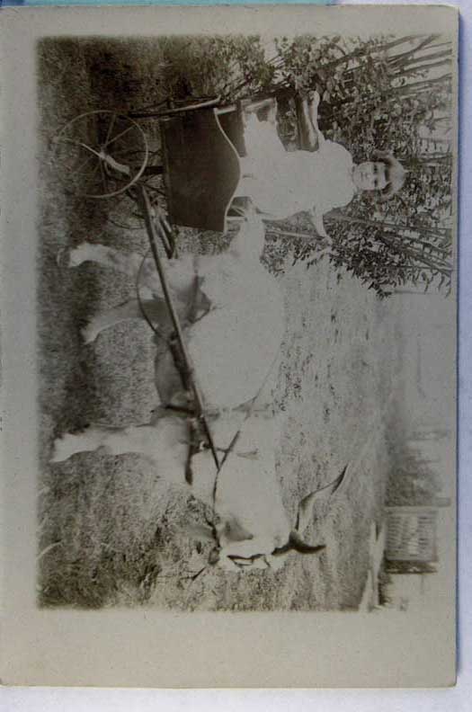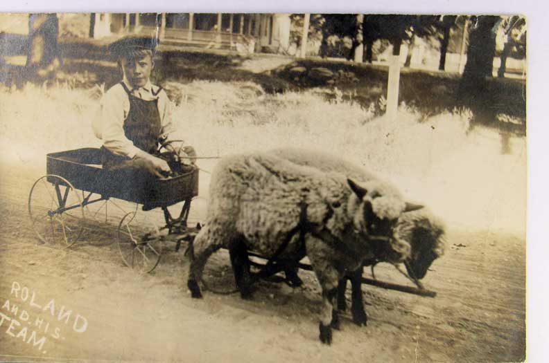 Lot #1476. View Larger | Rotate Sheep-Drawn Newspaper Delivery Wagon w/ Disabled Boy, Real Photo, Used Fenton, Michigan 1910 m cor cr Near F-VF