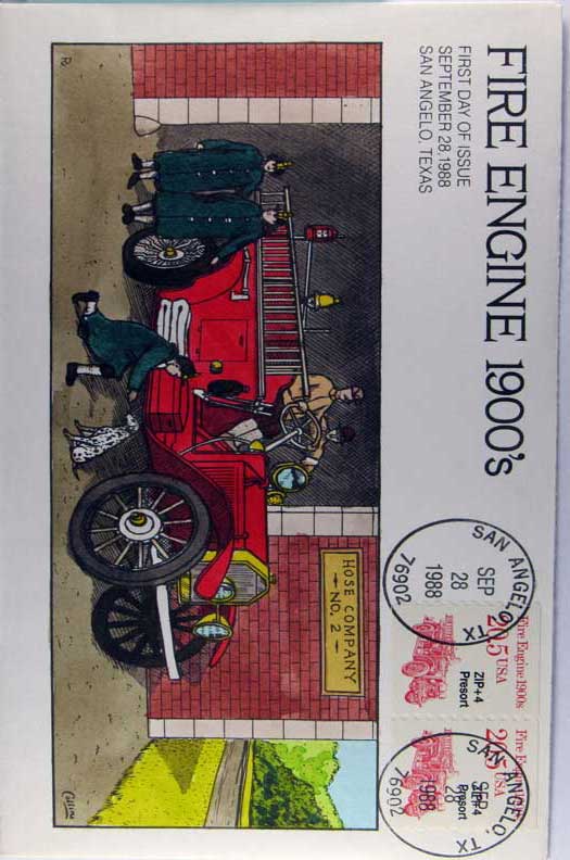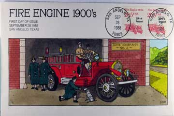 Lot #1449. View Larger | Rotate Hand-Painted First Day Cover by Collins, Fire Engine, 1998 VF