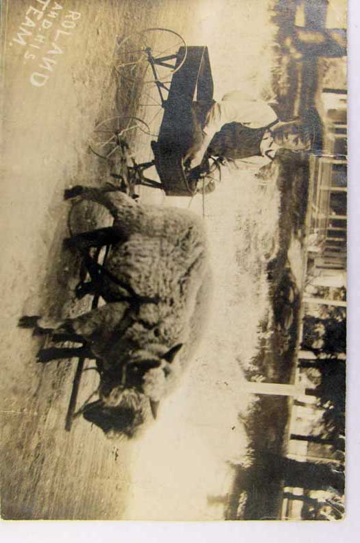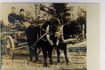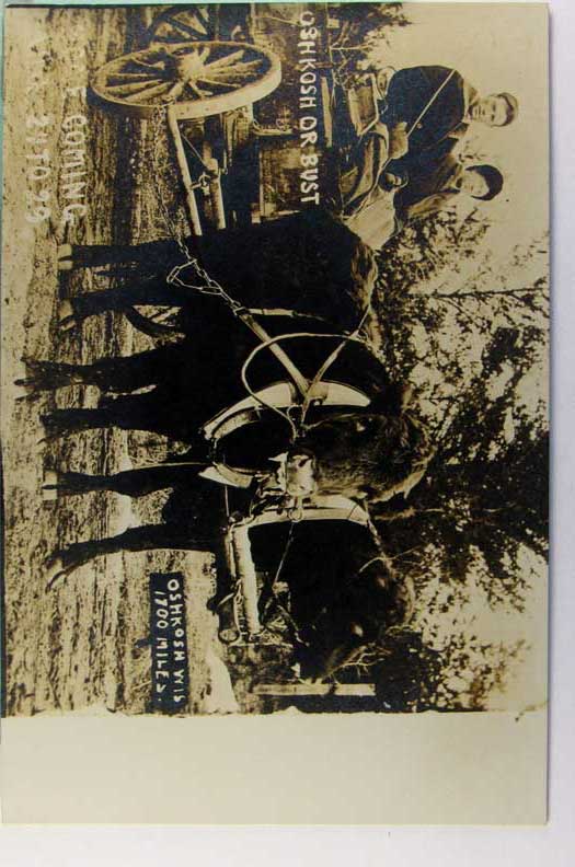 Lot #1473. View Larger | Rotate Cow-Pulled Wagon, Real Photo w/ Kruxo P.C. back, “Oshkosh, Wisconsin or Bust” VF
