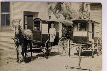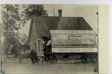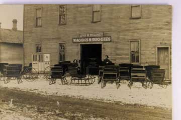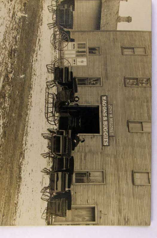 Lot #1459. View Larger | Rotate Adv. Maloney Wagons & Buggies, Incl. RFD Wagon, Real Photo w/ Badger P.C. back, Owner ID as Hopkins, Michigan VF