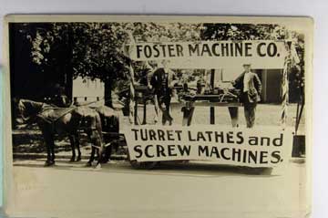 Lot #1456. View Larger | Rotate Horse-Drawn Parade Float Adv. “Foster Machine Co.”, Incl. Lathe, Real Photo w/ Kruxo P.C. back cor wear Near F-VF