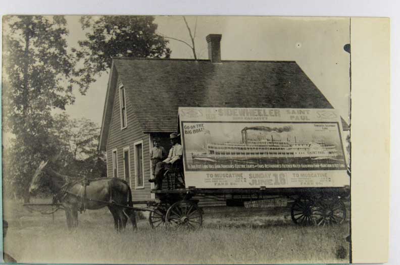 Lot #1457. View Larger | Rotate Horse-Drawn Wagon w/ Sign Adv. Sidewheeller Steamer Saint Paul, Owner ID as Iowa 1907 VF