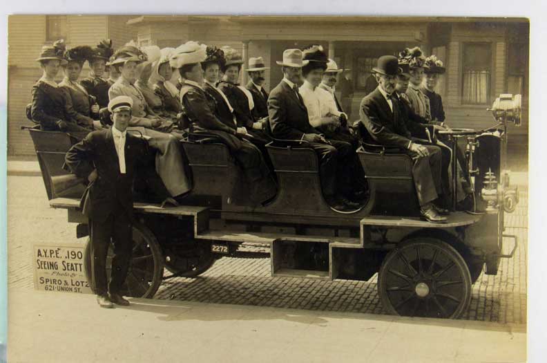 Lot #1487. View Larger | Rotate Sightseeing Auto, Real Photo w/ AZO P.C. back, “Seeing Seattle” VF