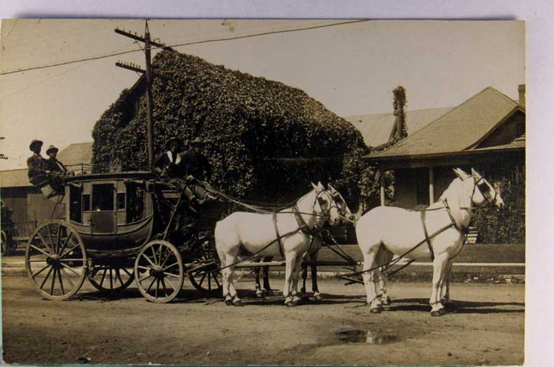 Lot #1463. View Larger | Rotate Horse-Drawn Stagecoach, Real Photo by C.T. Johnson w/ AZO P.C. back m cor cr VF