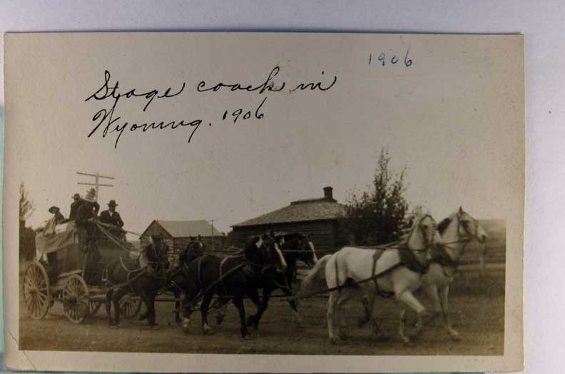 Lot #1468. View Larger | Rotate Horse-Drawn Stagecoach, Real Photo w/ Velox P.C. back, “Wyoming 1906” trimmed