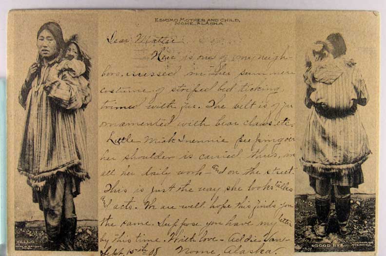 Lot #836. View Larger | Rotate Eskimo Mother & Child, Nome, Alaska, Photogravure, Used Same 1908 pwof & m cor wear Near VF