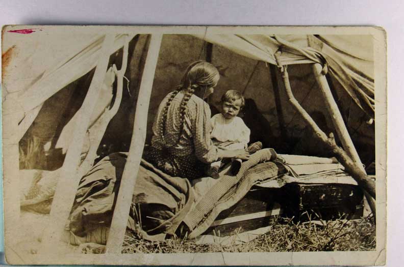 Lot #826. View Larger | Rotate Woman & Child in Tent, Real Photo w/ AZO P.C. back crs & wear F