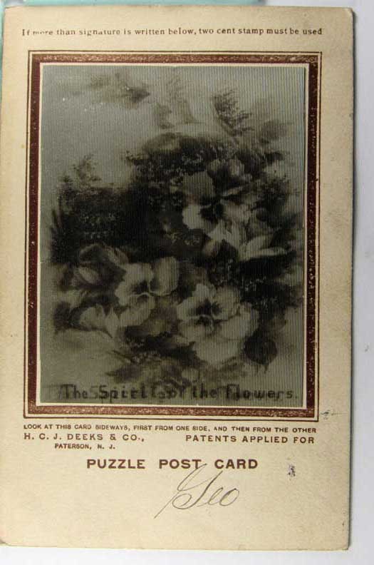 Lot #880. View Larger | Rotate Novelty Lenticular Puzzle Postcard, Deeks & Co. Pub., “Spirit of Flowers”, Used 1906 UB m pwof & m cof F-VF