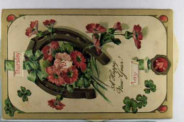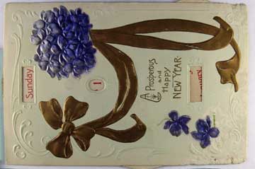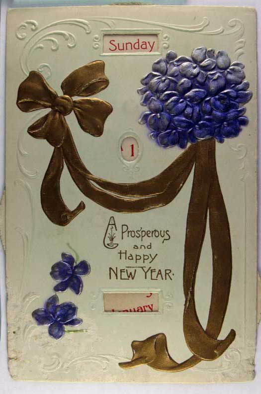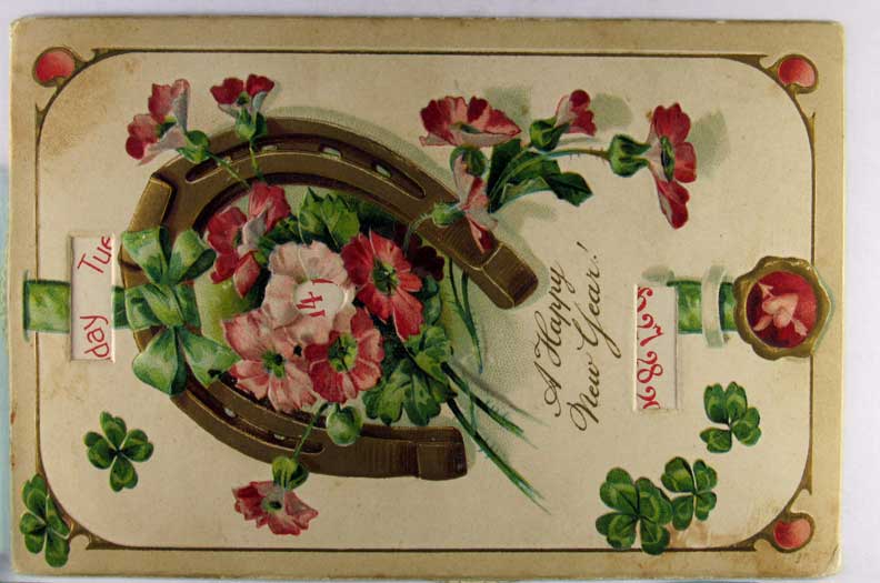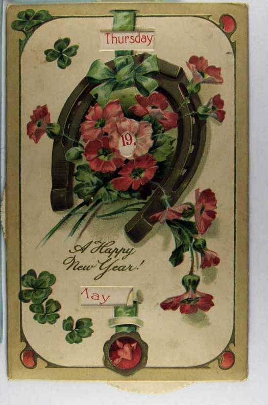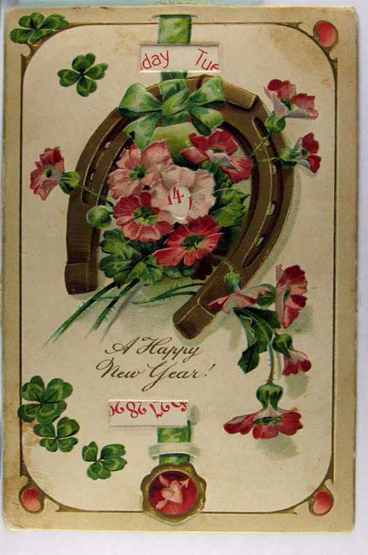 Lot #893. View Larger | Rotate (4) Four Cards, Novelty Die-Cut Mechanical Calendar, New Years, PFB Pub., #7452 DB one missing back Gen F-VF