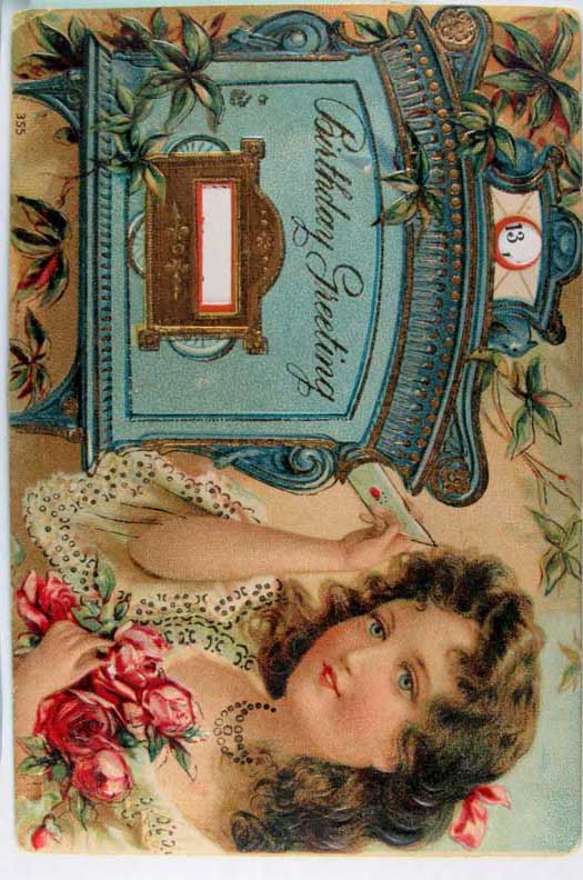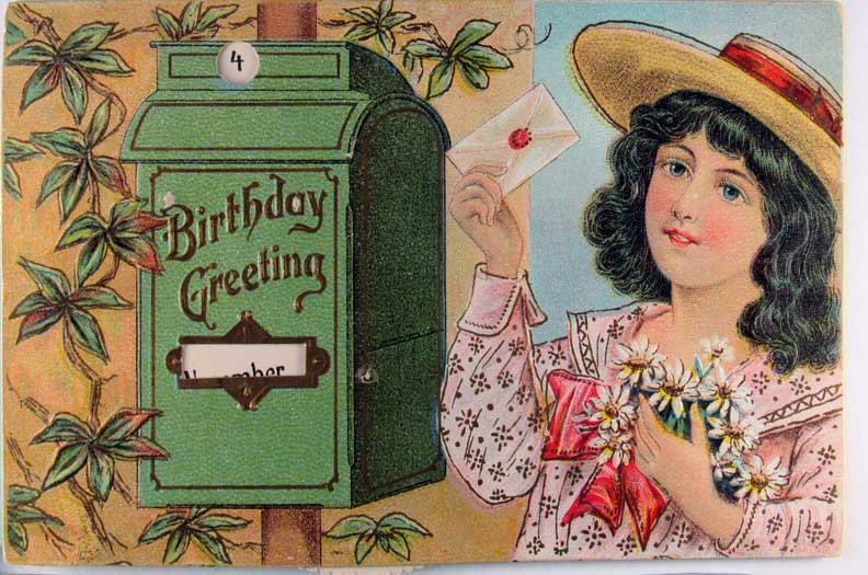 Lot #887. View Larger | Rotate Novelty Mechanical w/ Calendar, Birthday, #355 DB emb m cor wear F-VF