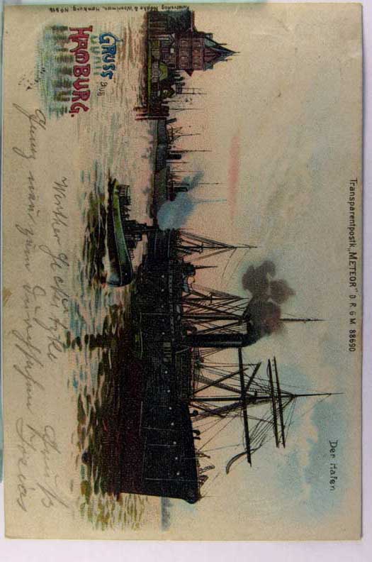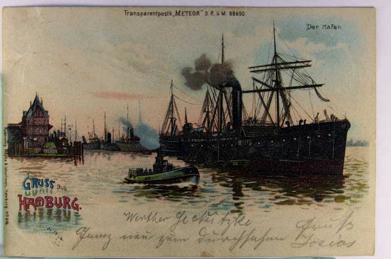 Lot #874. View Larger | Rotate Hold to the Light, Transparency, Meteor Pub., “Gruss aus Hamburg”, Used 1898 UB pwof F-VF