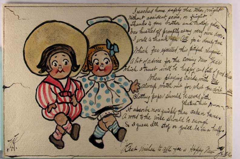 Lot #877. View Larger | Rotate Novelty Hand-Drawn w/ Flower Fairy, Used 1908 cor flt F-VF