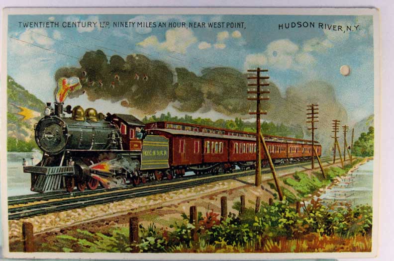 Lot #869. View Larger | Rotate Hold to the Light, Die-Cut, “Hudson River, New York”, w/ Train DB VF