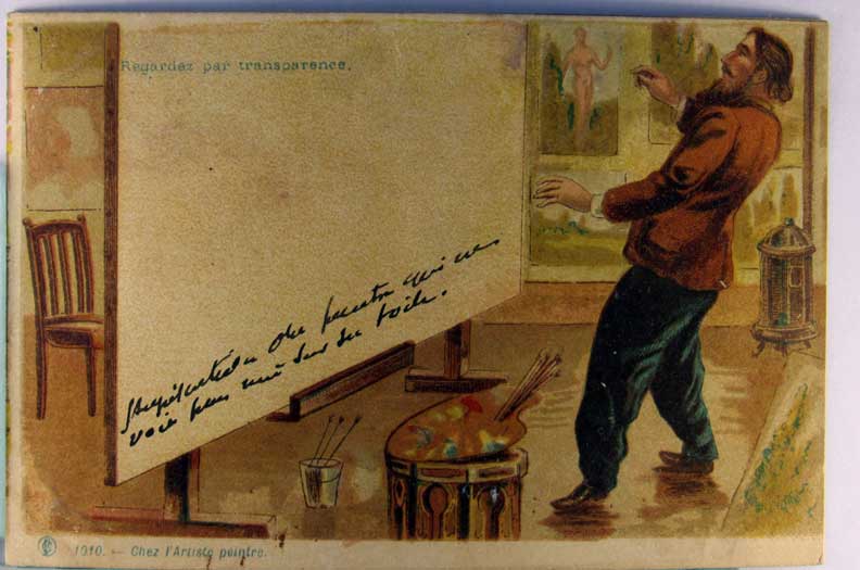 Lot #879. View Larger | Rotate Hold to the Light, Transparency, French Pub., Reveals Painting, Used 1900 UB m pwof Near F-VF