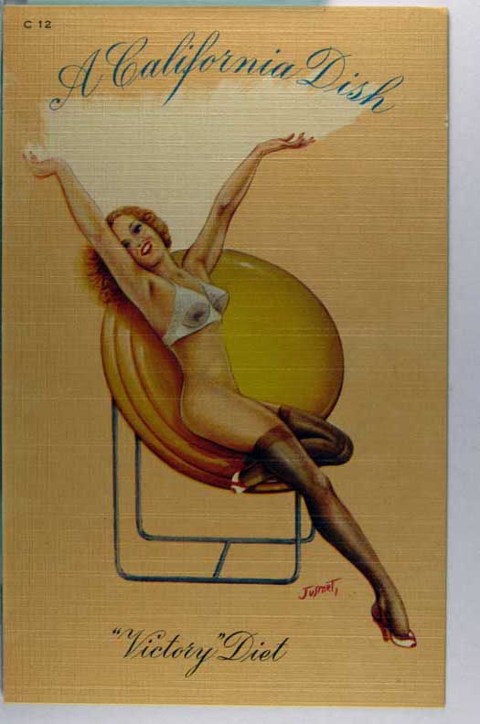 Lot #982. View Larger | Rotate Risque Linen, A California Dish Ser. #C12, “Victory Diet” non p.c. back VF