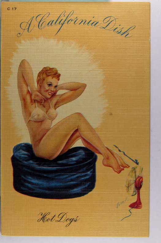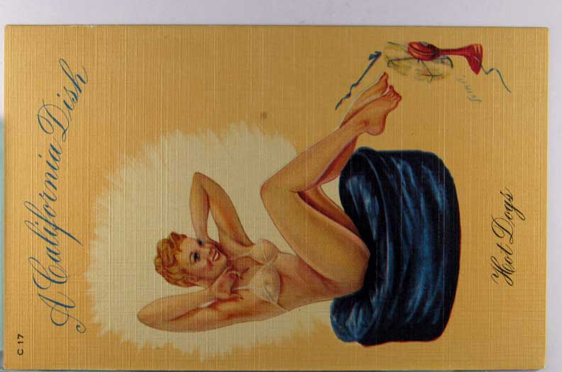 Lot #981. View Larger | Rotate Risque Linen, A California Dish Ser. #C17, “Hot Dogs” non p.c. back VF
