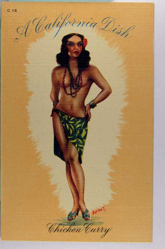 Lot #983. View Larger | Rotate Risque Linen, A California Dish Ser. #C16, “Chicken Curry” non p.c. back VF