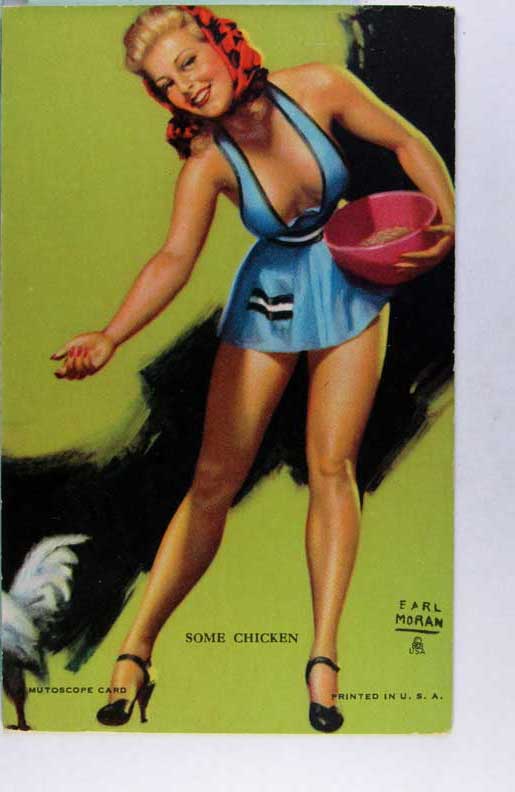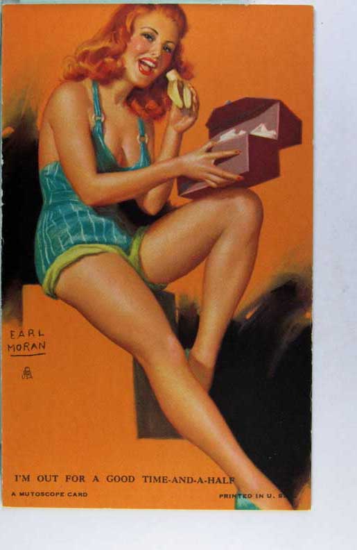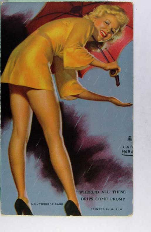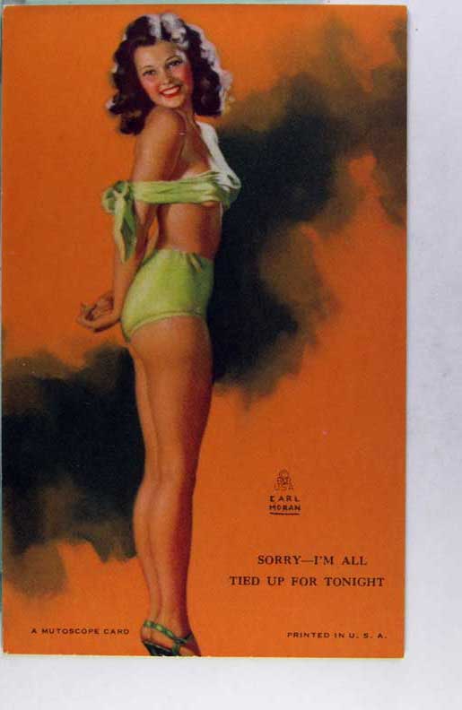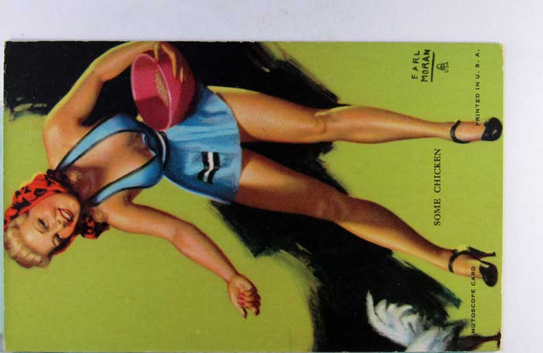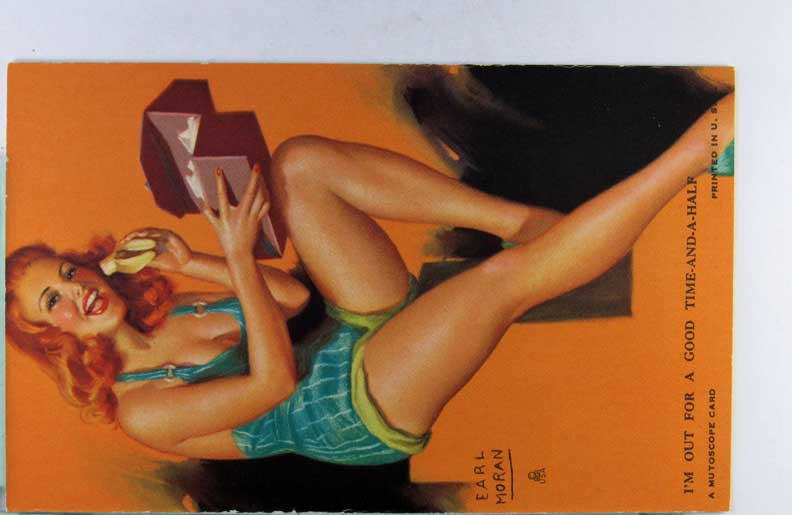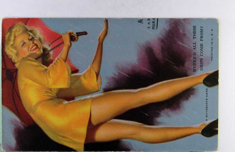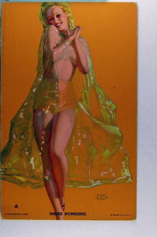 Lot #958. View Larger | Rotate Risque Mutoscope Arcade Card, Art. Sig. Earl Moran, “Sheer Nonsense” m cor wear VF
