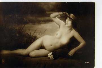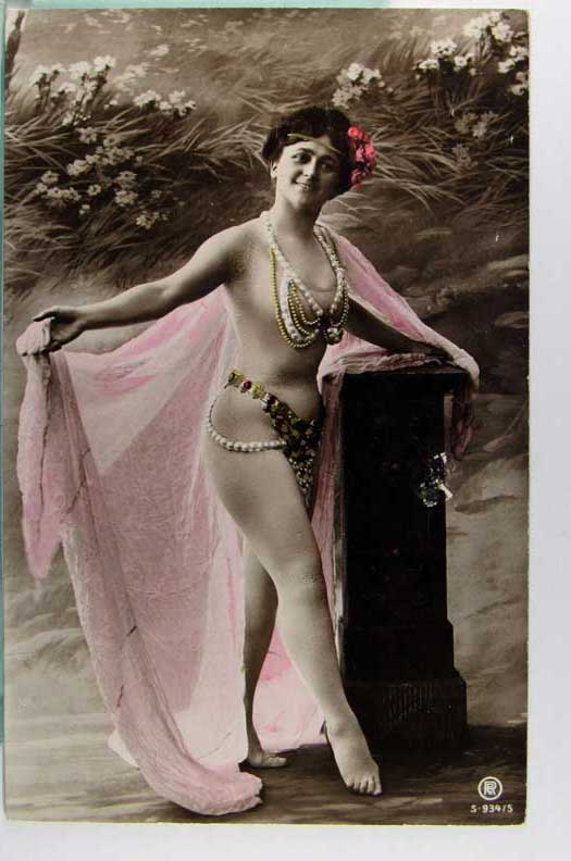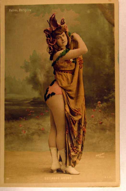 Lot #907. View Larger | Rotate Suzanne Andre, Early French Tinted Real Photo by Walery, “Folies Bergere” ser., very nice DB VF