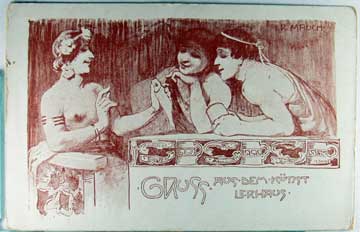 Lot #943. View Larger | Rotate Risque Art. Sig. Mauch, “Gruss Ause Dem Kunst Lerhaus” UB cor wear & edge wear Near F-VF