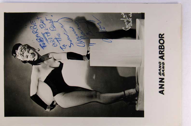 Lot #928. View Larger | Rotate Adv. Risque Dancer “Ann Bang Bang Arbor”, Real Photo w/ Kodak P.C. back, Incl. Autograph VF
