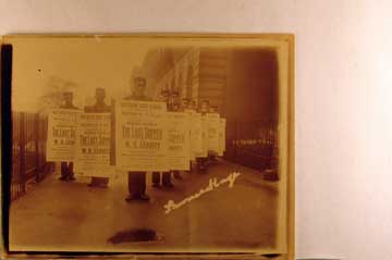 Lot #272. View Larger | Rotate B&W Photo, Rare British Court Size w/ Many Men & Broadsides Adv. Art Exhibition DB F-VF