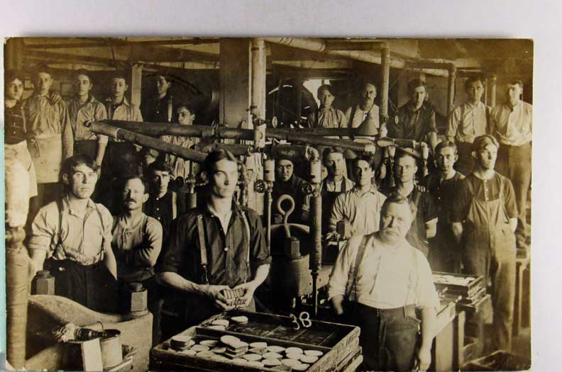 Lot #299. View Larger | Rotate Rubber Heel Factory Interior?, Mishawaka, Indiana, Real Photo w/ AZO P.C. back, Used 1908 VF