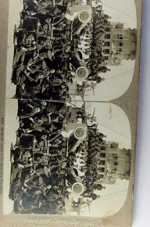 Lot #1395. View Larger | Rotate U.S. Battleship Wisconsin, Real Photo Stereoview Card, Universal Photo Art Pub. F-VF