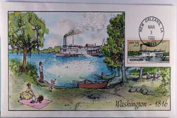 Lot #1402. View Larger | Rotate Hand-Painted First Day Cover by Collins, “Washington 1816”, 1989 VF