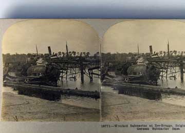 Lot #1396. View Larger | Rotate Wrecked Submarine at Zee-Brugge, Belgium, Real Photo Stereoview w/ non P.C. back VF