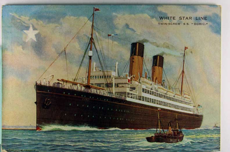 Lot #1379. View Larger | Rotate Adv. White Star Line, “RMS Doric”, Used 1934 DB m cor wear F-VF