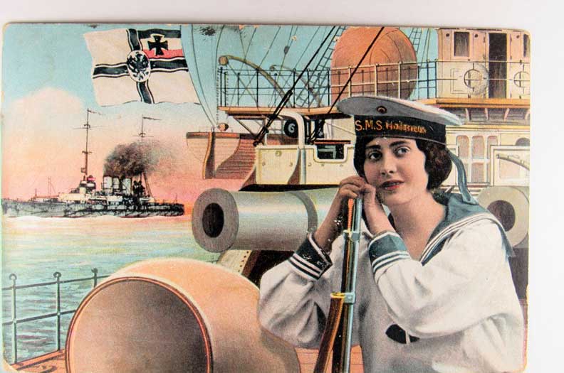 Lot #1391. View Larger | Rotate German Military Ship, Used 1915 DB cor wear & m cor crs F-VF