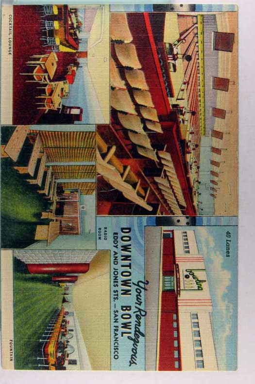 Lot #1215. View Larger | Rotate Bowling, Adv. The Downtown Bowl, San Francisco, California, Curt Teich Pub. L VF