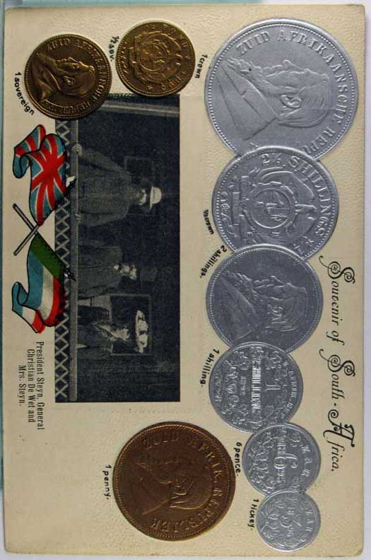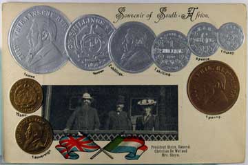 Lot #1269. View Larger | Rotate Coin Card, South Africa, w/ President Steyn UB emb m cor wear F-VF