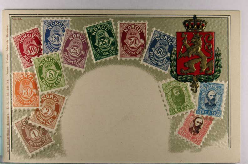 Lot #1265. View Larger | Rotate Norwegian Stamp Card, Ottmar Zieher Pub., #28 UB emb VF