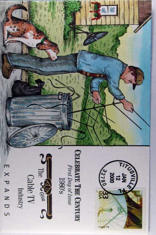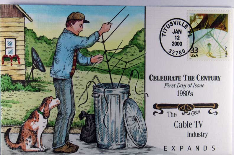 Lot #1603. View Larger | Rotate Hand-Painted First Day Cover by Collins, Celebrate the Century, “The Cable TV Industry”, 2000 VF