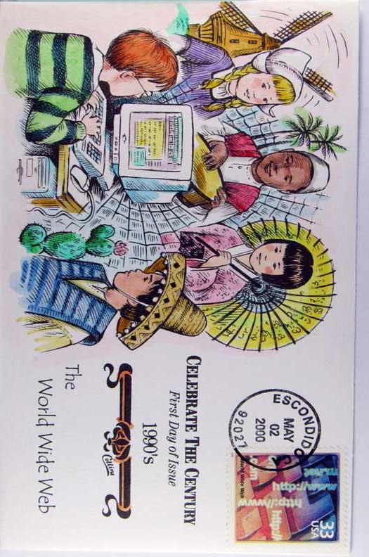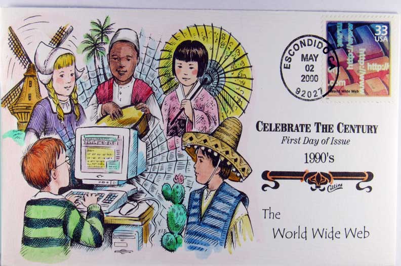 Lot #1601. View Larger | Rotate Hand-Painted First Day Cover by Collins, Celebrate the Century, “The World Wide Web”, 2000 VF